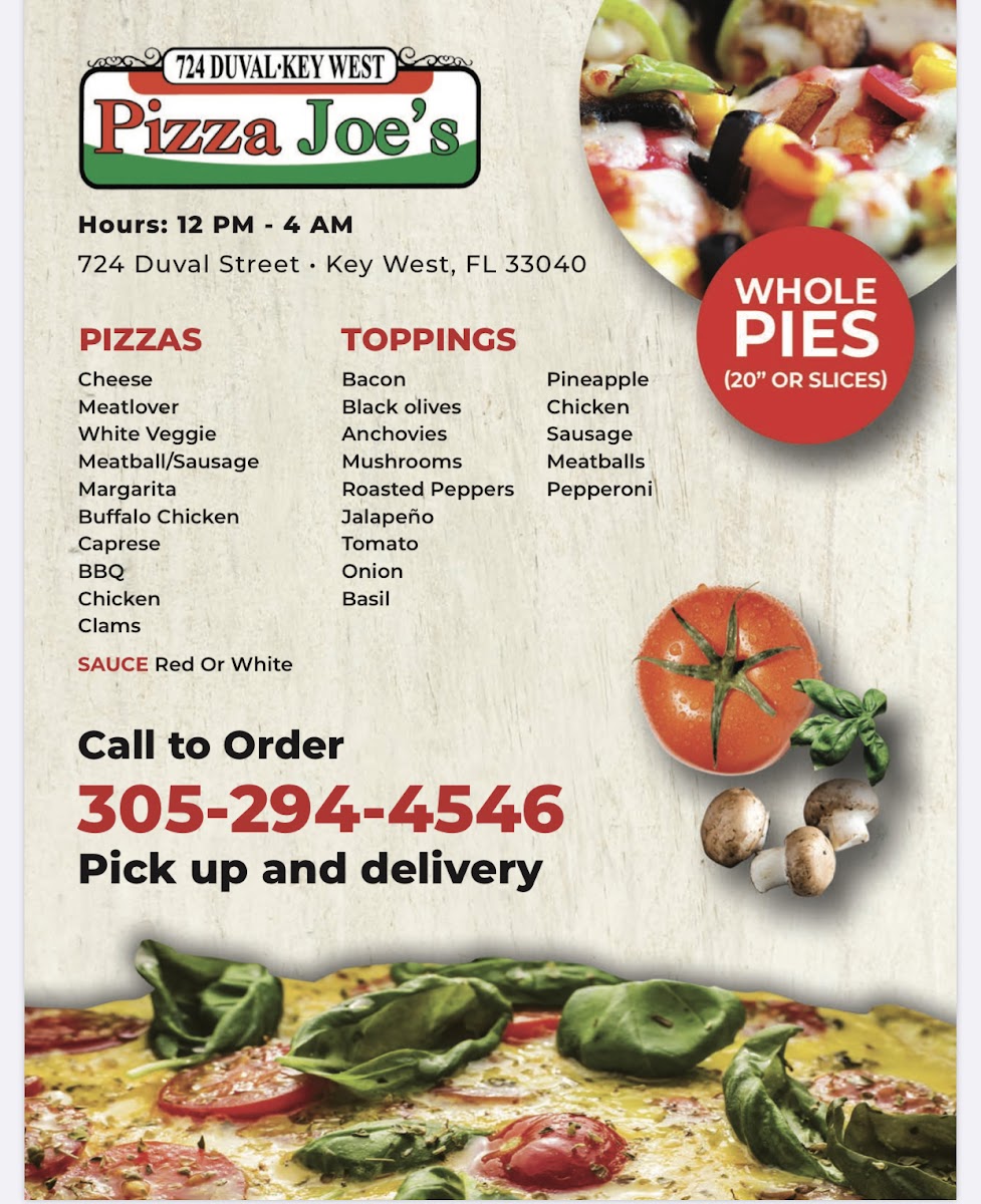 Each bite at Pizza Joe’s is not merely a taste experience; it’s a journey through the heart of Key West. Whether you’re seeking a quick lunch break during a stroll down Duval Street or a late-night snack after a day of adventures, Pizza Joe's ensures you leave satisfied and smiling. With a menu that balances flavor and generosity, this pizzeria is definitely worth your time and appetite!
